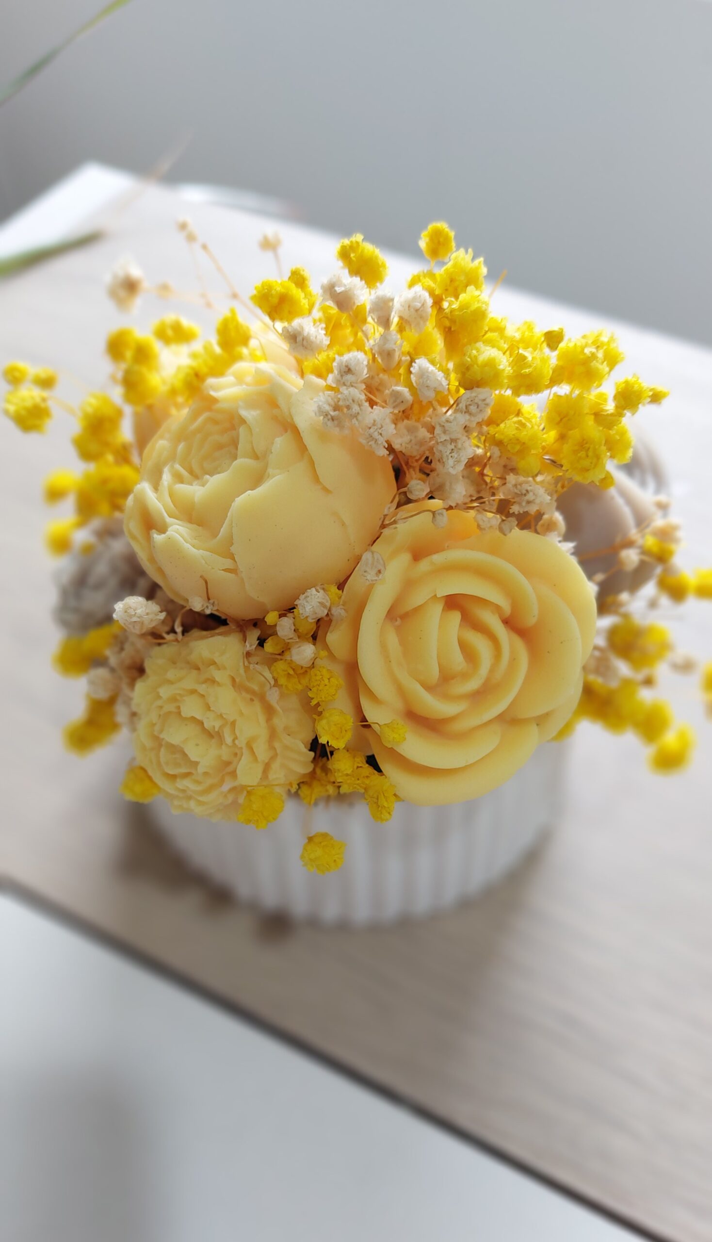Naši šopki iz 100% naravnega sojinega voska so ročno izdelani z ljubeznijo in natančnostjo, zato je vsak kos prava mala umetnina. Vsak cvet, in detajl je oblikovan ročno, kar pomeni, da je vsak šopek popolnoma unikaten in nikoli enak drugemu.