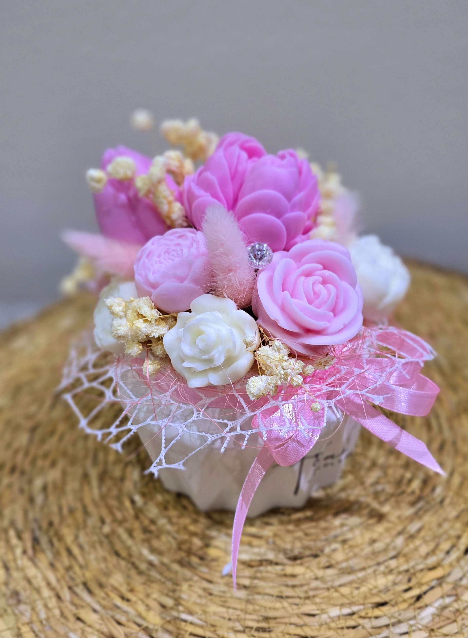 Unikaten dišeč šopek iz voska (100% sojin vosek), ki ne oveni in očara s svojim videzom in vonjem. 🩷