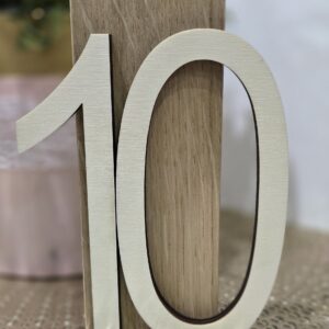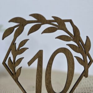 Dekoracija za oštevilčenje miz je izdelana iz lesa.